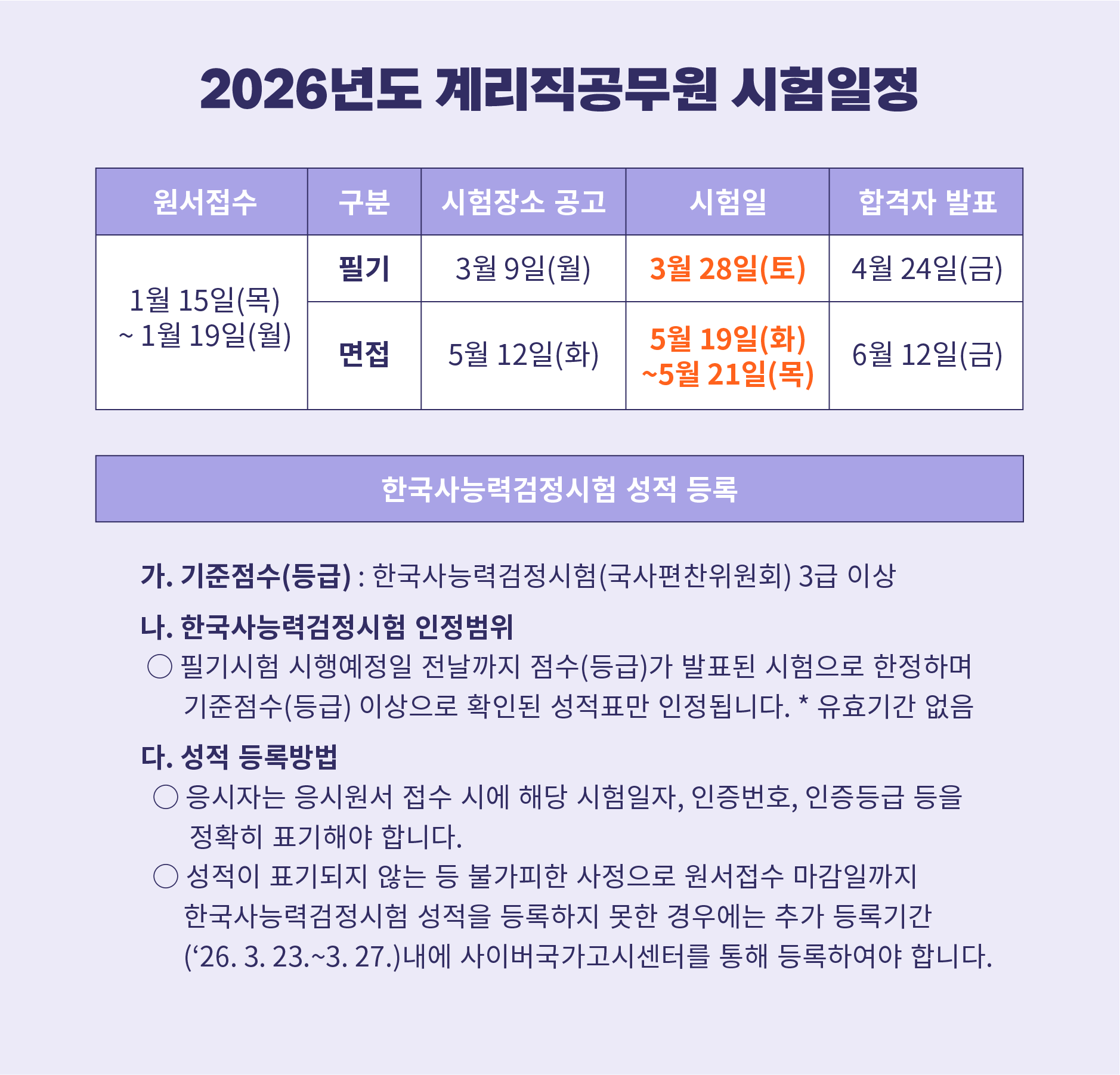 5.[계리직공무원] 26년 시험일정은 어떻게 되나요?